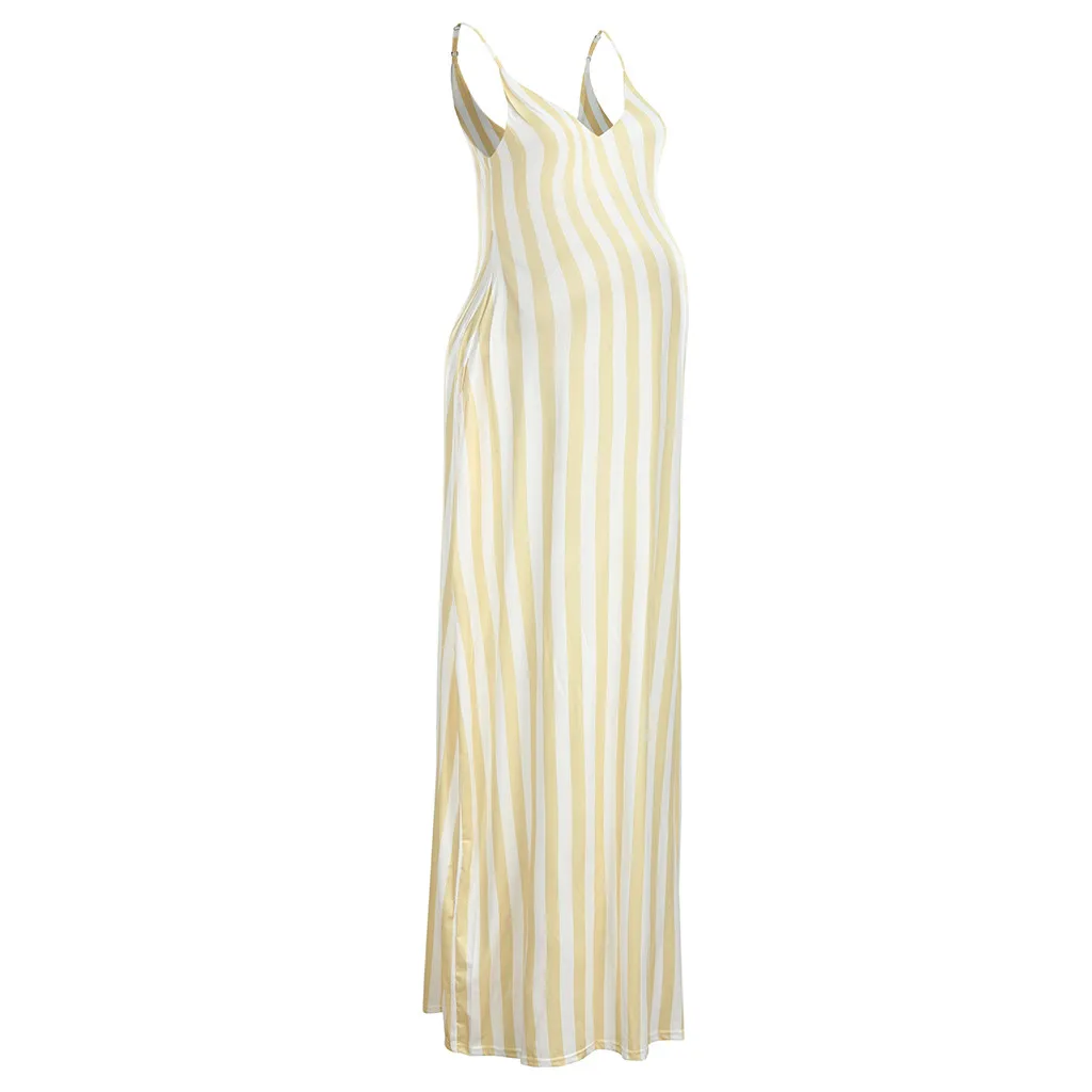 Модное женское длинное платье в полоску без рукавов для беременных