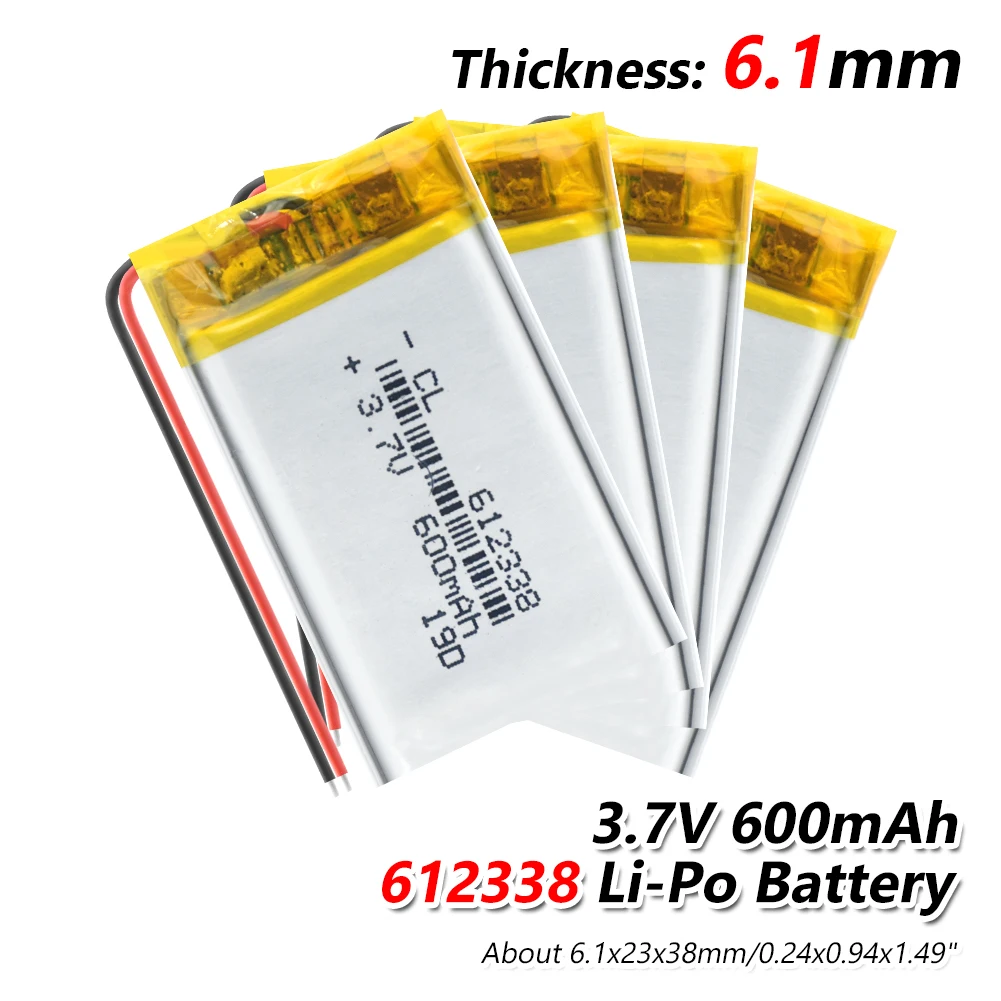 Высокое качество 612338Перезаряжаемый литий-полимерный аккумулятор с двумя проводами. Зарядное устройство LipoБатареи ультра тонкие, легкие и мощные. Очень низкий саморазряд и низкое внутреннее сопротивление.