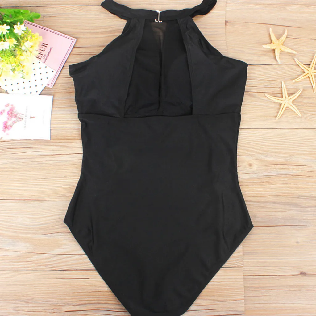 Женский черный сетчатый сексуальный цельный купальник, слитный купальник большого размера