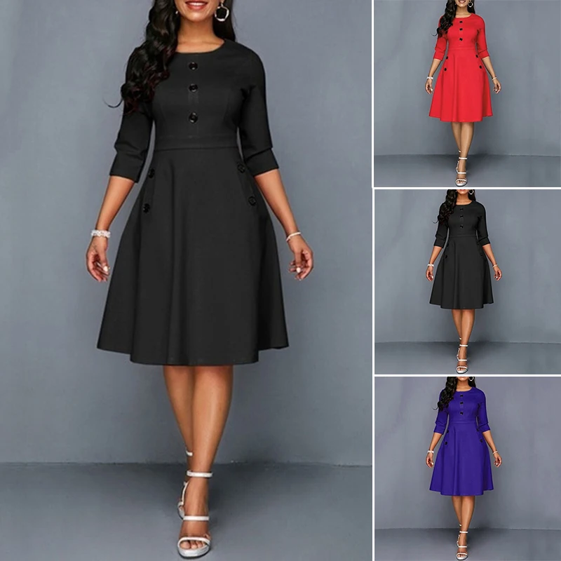 * Описание изделия: круглый вырез; рукав 3/4; а-силуэт; Ретро; Талия; Мода; Платье До Колена