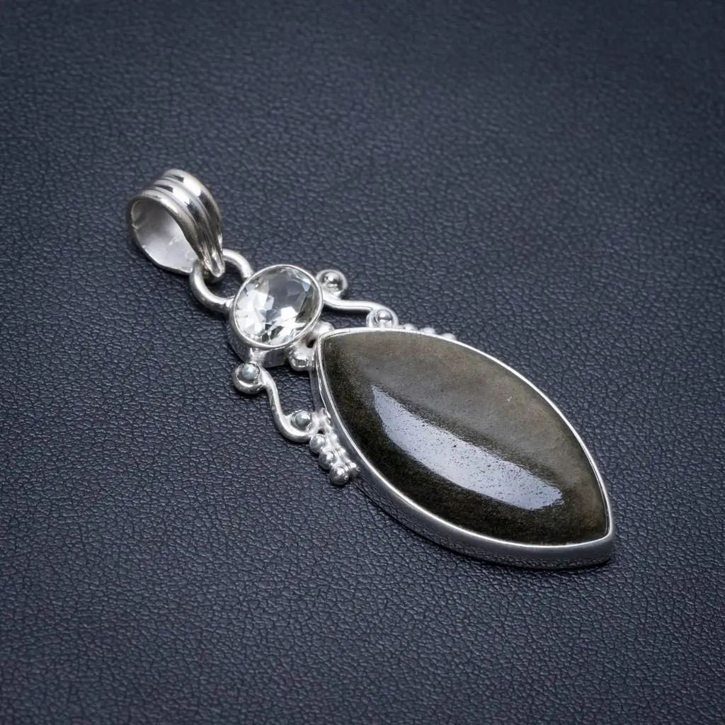 Натуральный черный кошачий глаз и Зеленый Аметист панк стиль 925 пробы серебряный кулон 2 " ; S1224