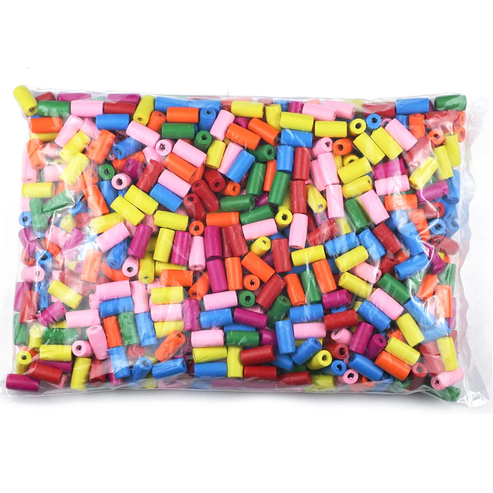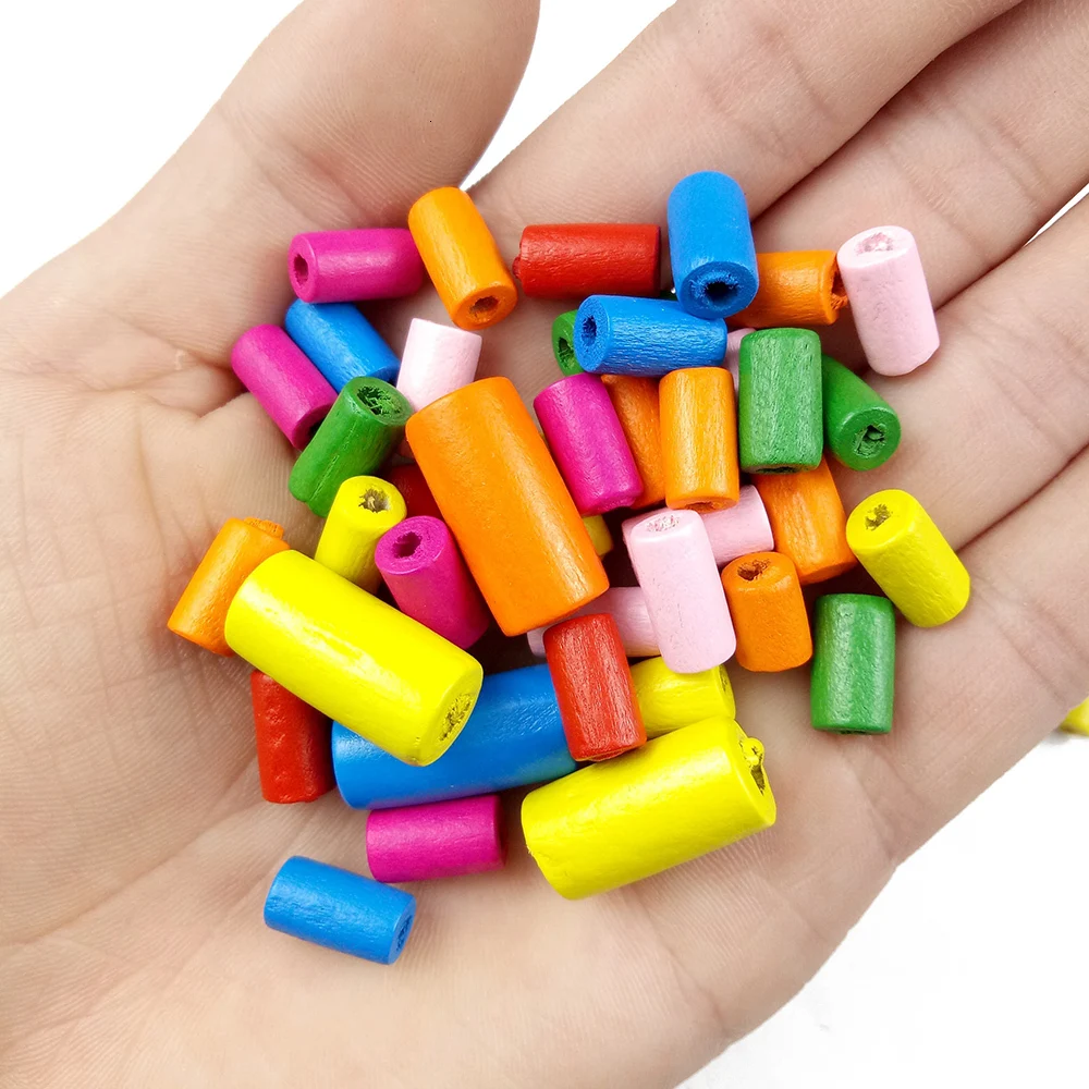 Дешевые Цилиндрические деревянные бусины JHNBY 12*6/20*10 мм 100 шт. цветные игрушечные из натурального дерева для