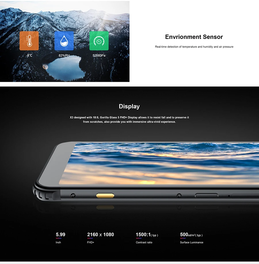 ОС: Android 8,1 Язык: многоязычный Процессор: Octa Core Размер экрана: 5,99 дюйма Графический процессор: графический процессор Qualcomm®SDM845 Разрешение: 2160x1080 FHD Память: 6 ГБ ОЗУ 64 Гб встроенной памяти Фронтальная камера: 20.0MP Расширение памяти: 128 ГБ Тыловая Камера: 12.0MP + 24.0MP Батарея: 4100 мАч Sim-карта: две sim-карты, двойной режим ожидания Особенности: 4G, IP68 водонепроницаемый, GPS,Bluetooth, электронная книга, электронная почта, Камера, привязка и Портативная точка доступа, Play Store и т. Д. Сеть: 2G: GSM:B2/B3/B5/B8(850/900/1800/1900) МГц CDMA: BC0 3G: WCDMA:B1/B2/B4/B5/B8 МГц TD-SCDMA: 34/39 4G:FDD-LTE:B1/B2/B3/B4/B5/B7/B8/B12/B17/B18/B19/B20/B26/B28/B29/B30 МГц LTE-TDD: 38/39/40/41 Упаковка: 1 сотовый телефон AGM X3 1 аккумулятор 4100 мАч 1 кабель Micro-usb Зарядное устройство-1 шт.; Руководство пользователя (1 шт.)