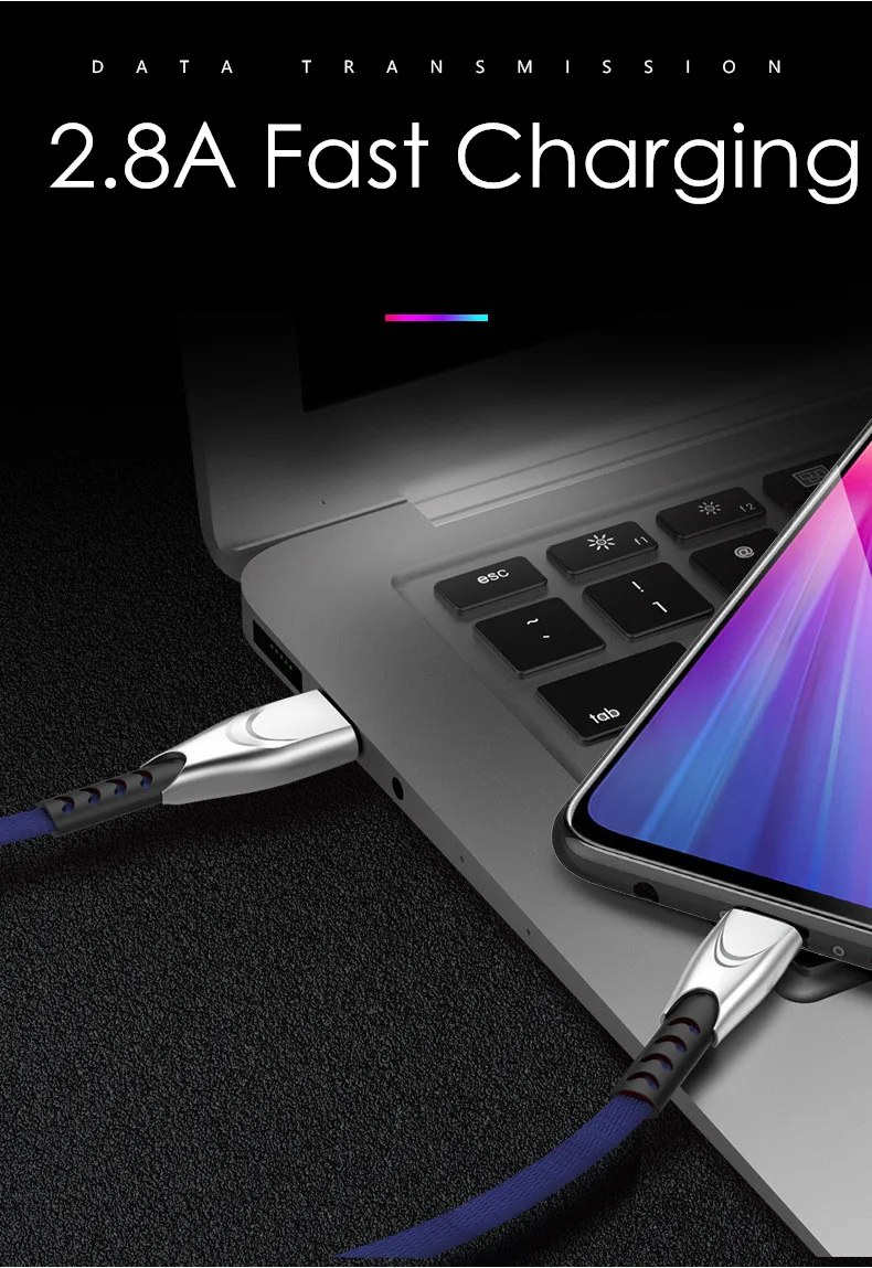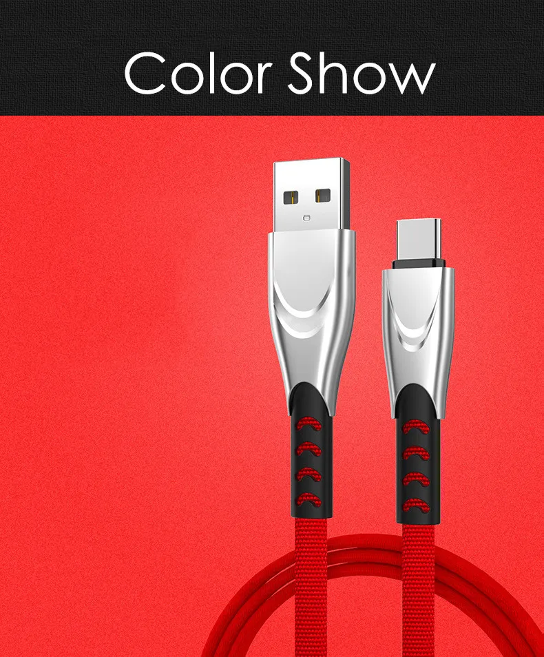 Цинковый кабель USB 5V 2.8A быстрая зарядка, плоский нейлоновый кабель USB Type-C с микро USB зарядное устройство, кабель провод шнур для Huawei Samsung Xiaomi Oneplus