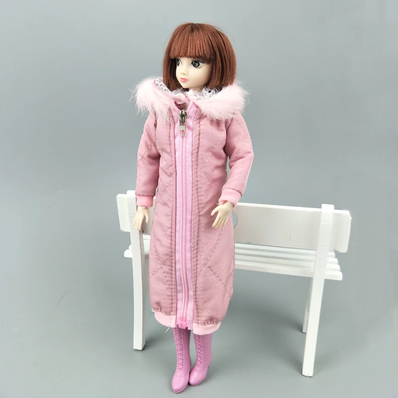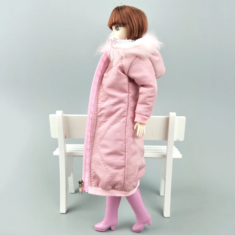 Розовое длинное зимнее пальто, платье для куклы Барби, одежда, парка для 1/6, зимняя одежда для куклы BJD, куртка 1:6, аксессуары для кукол, детская игрушка