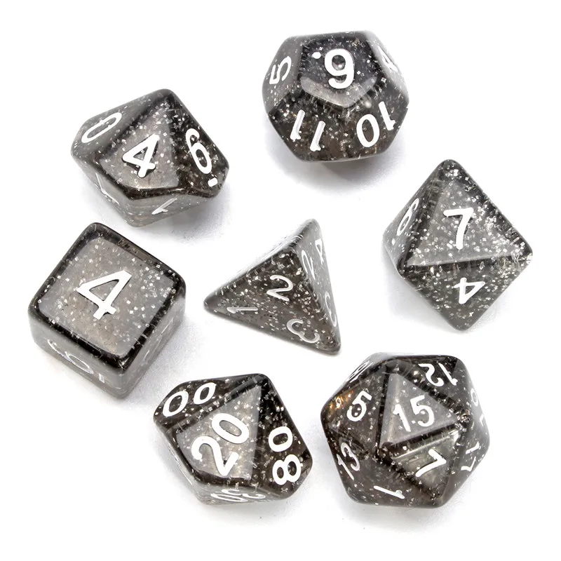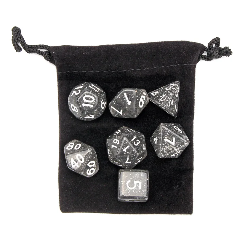 -Каждый цвет поставляется с 7 различными игральными костями: 4, 6, 8, 10, 12, 20 двухсторонними игральными костями и процент (%) игральных костей.