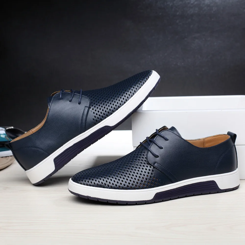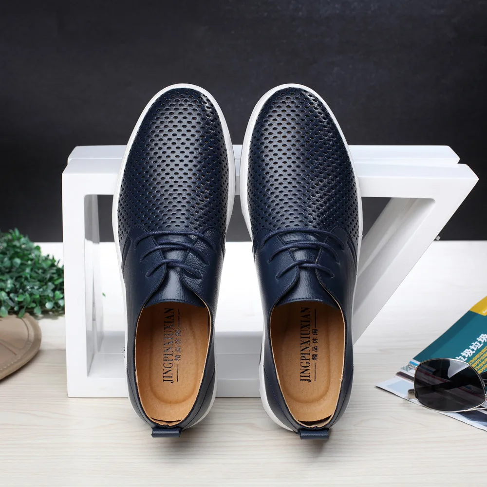 Летняя Стильная мужская летняя дышащая деловая обувь для отдыха; Однотонная кожаная обувь