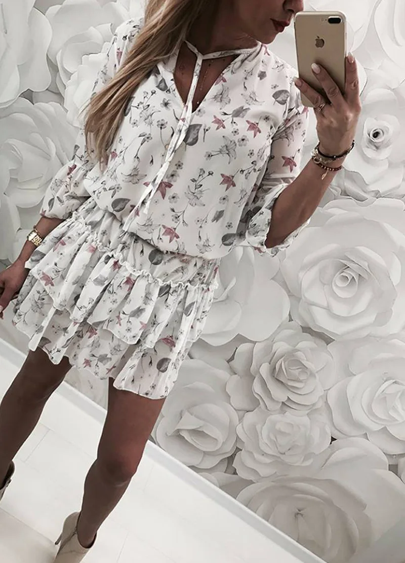 Новое модное кружевное мини платье с цветочным принтом открытыми плечами летнее