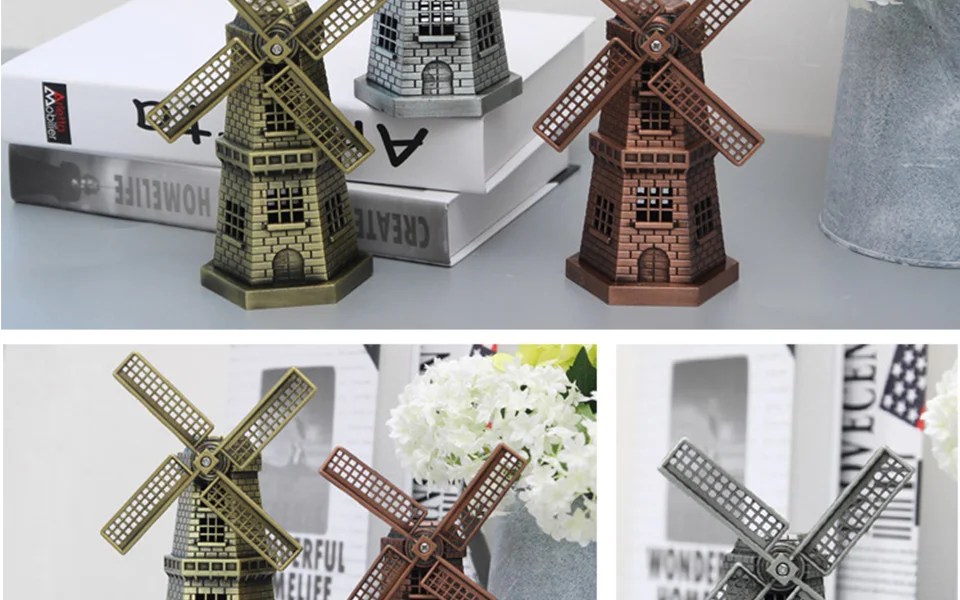 Европейский ретро металл Ремесла Нидерланды ветряная мельница модель Рождественский подарок на день рождения стол Спальня украшение дома украшения