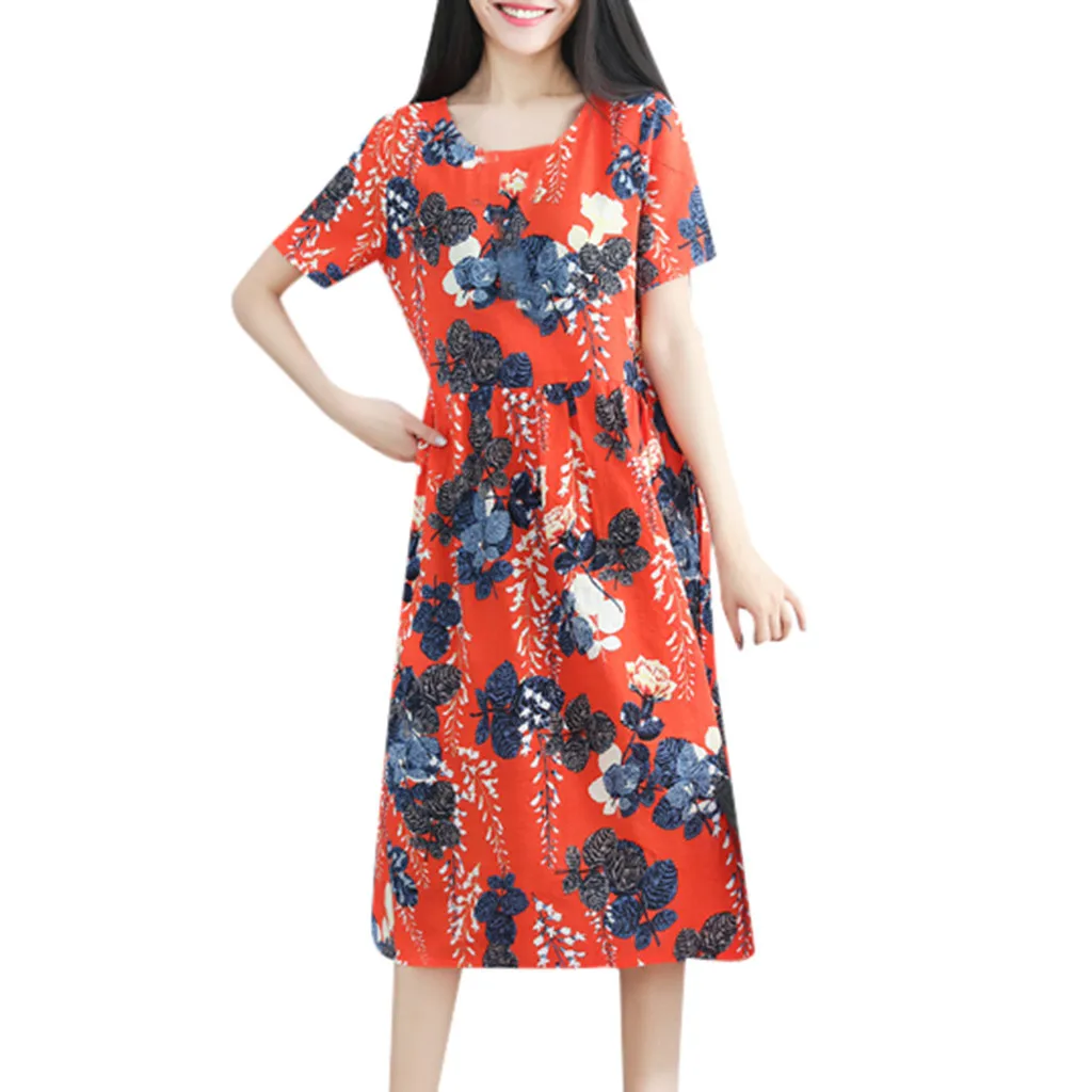 Женское винтажное платье с коротким рукавом и круглым вырезом по колено