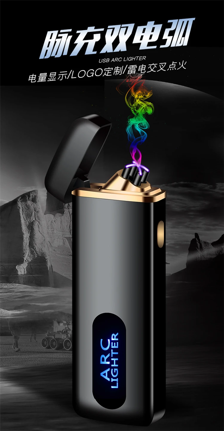 Металлическая USB Электронная зажигалка, перезаряжаемая двойная дуговая зажигалка, батарея, дисплей, прикуриватель, аксессуары для дыма, гаджеты для мужчин