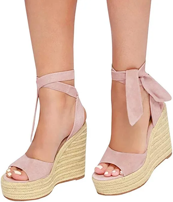 Женская модная пляжная обувь на танкетке с открытым носком и толстой подошвой на шнуровке римские сандалии
