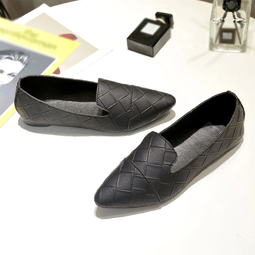 Женская обувь; элегантная повседневная обувь на низком каблуке с острым носком без застежки