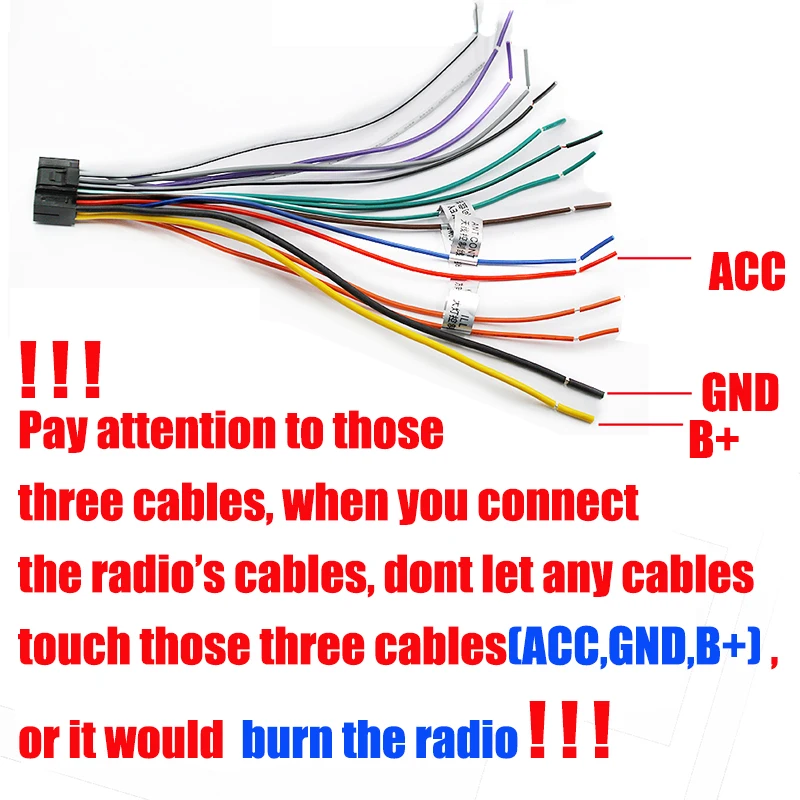 Примечание: Пожалуйста, используйте наши кабели питания для подключения нашего автомобильного радио, невозможно вставить оригинальную автомобильную вилку непосредственно в нашу машину.
