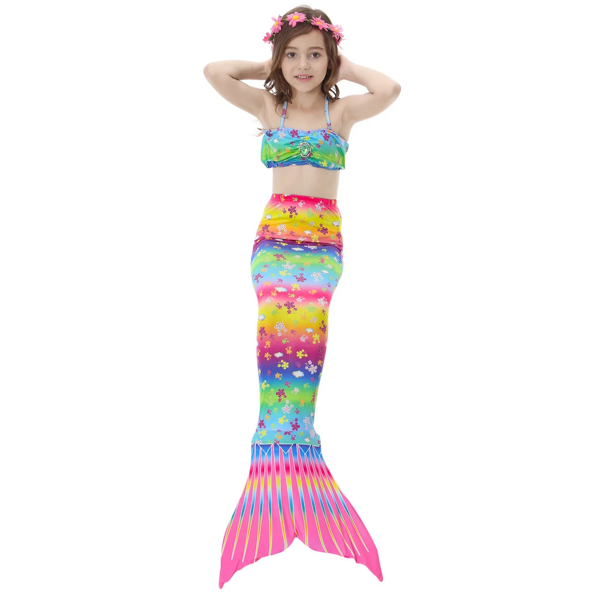 Детский купальный костюм русалки из 3 предметов, бикини для девочек с хвостом русалки, без Ребристого купальника, детская одежда, купальник с хвостом русалки, одежда для плавания