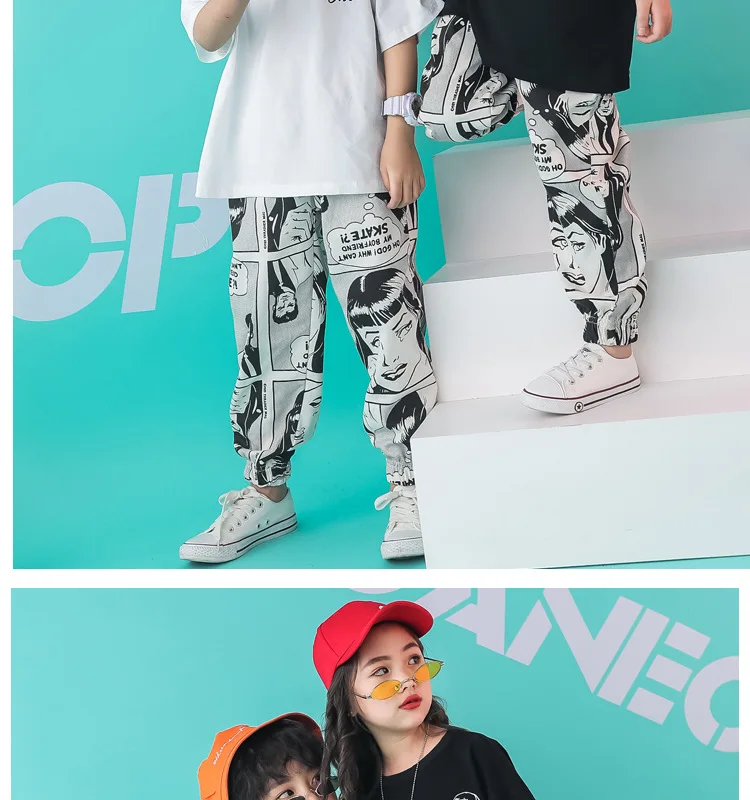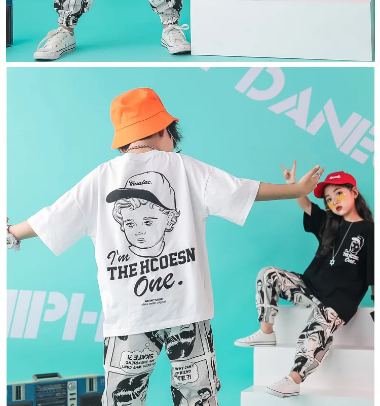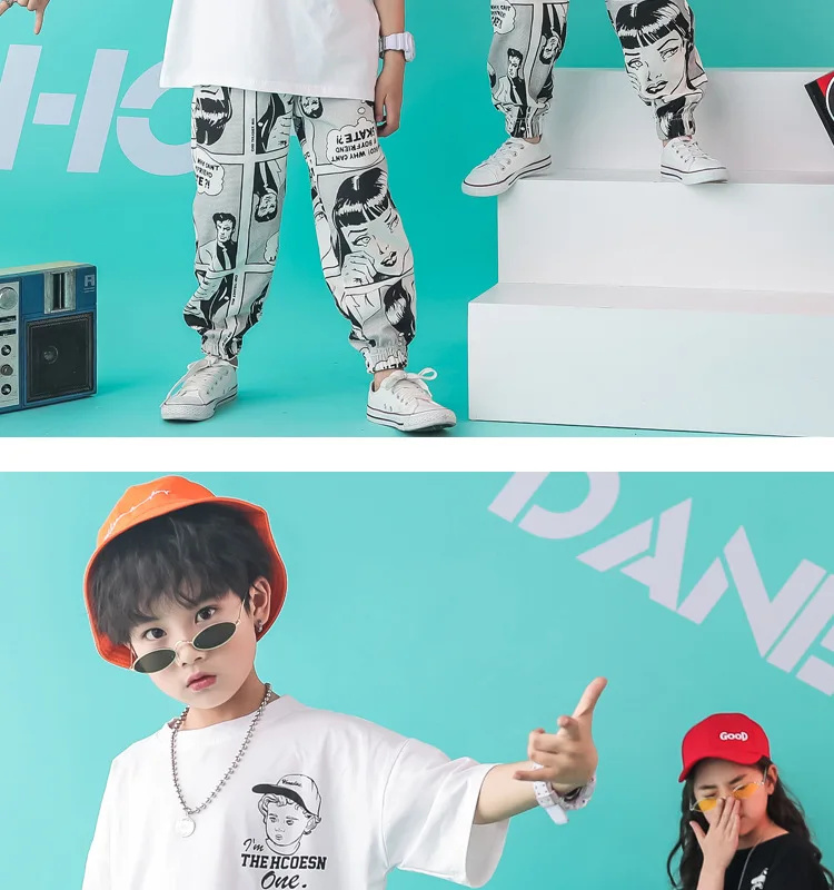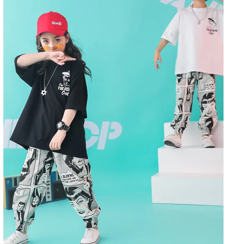 Детская одежда для бальных танцев в стиле хип-хоп для девочек и мальчиков, костюмы для джазовых танцев, футболка большого размера, топы, свободные штаны для бега, Одежда для танцев