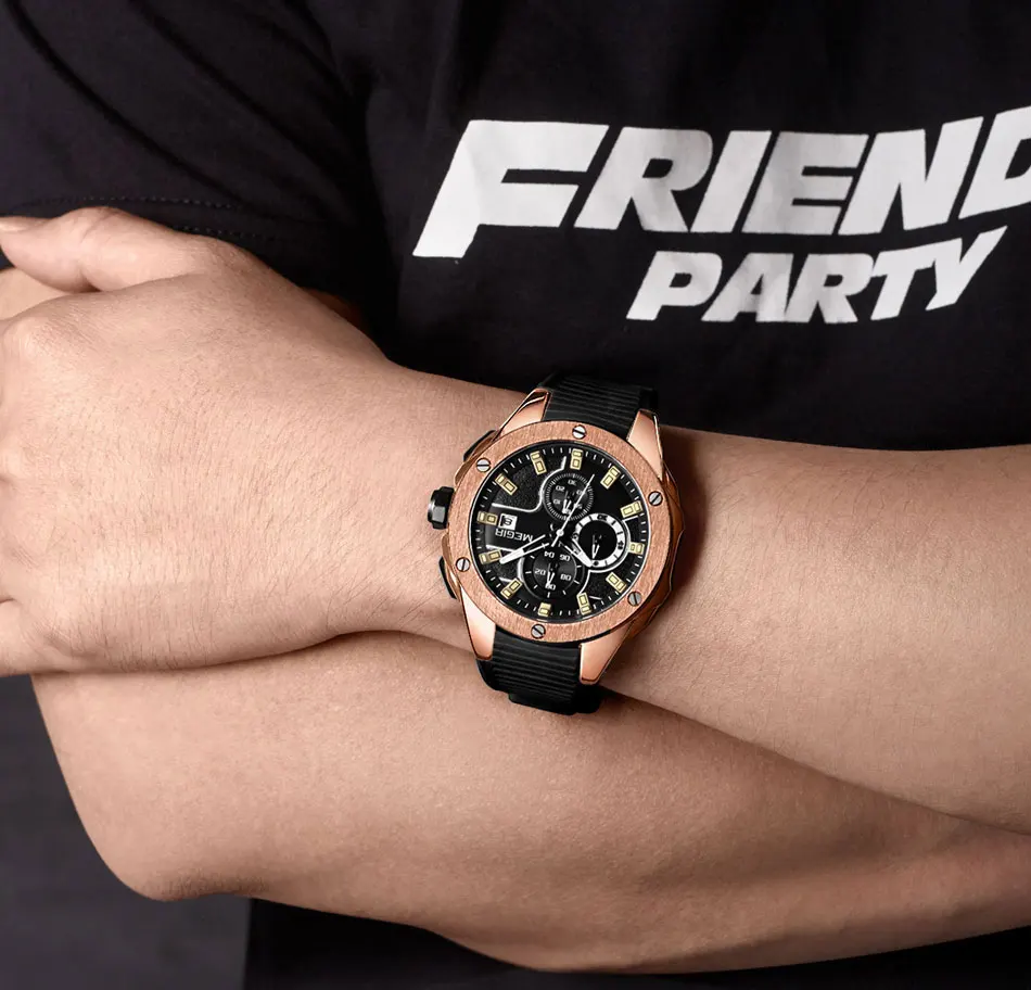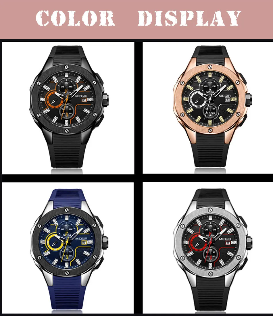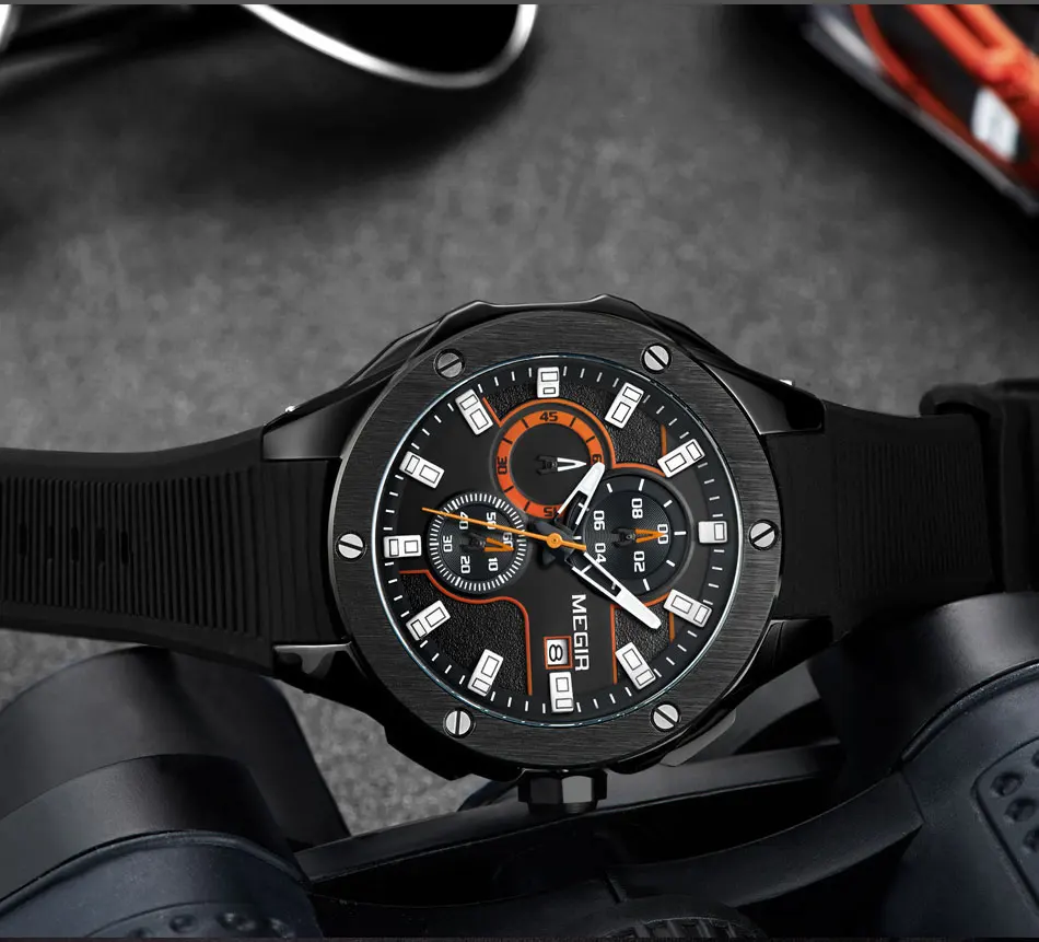 Мужские спортивные часы MEGIR, кварцевые армейские часы с силиконовым ремешком и хронографом, 2019