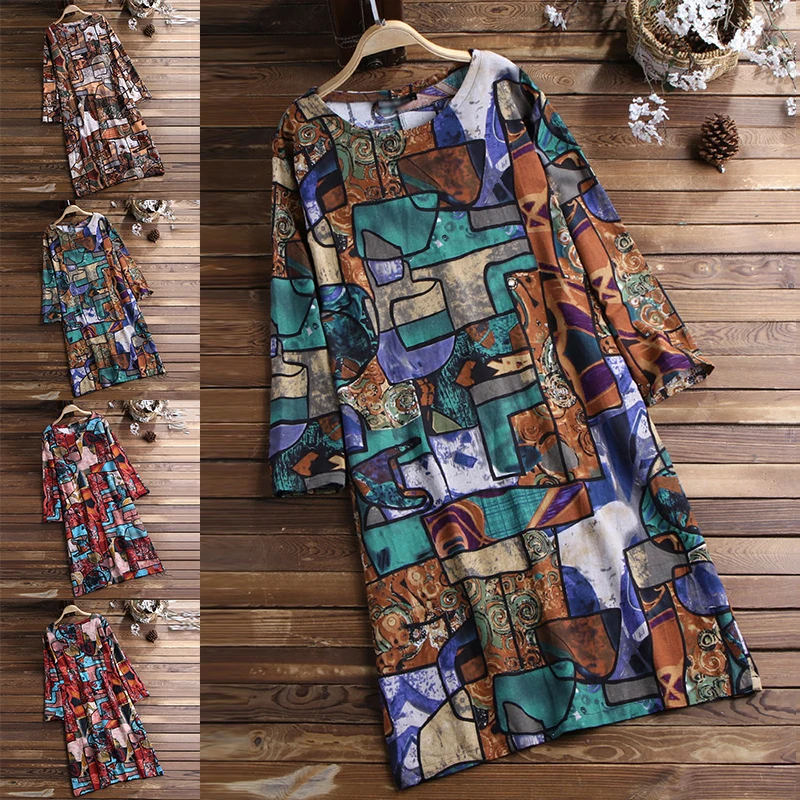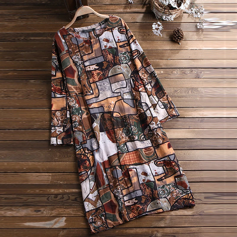 * Описание товара:Круглый вырез, длинный рукав, цветочный принт, свободный, повседневный