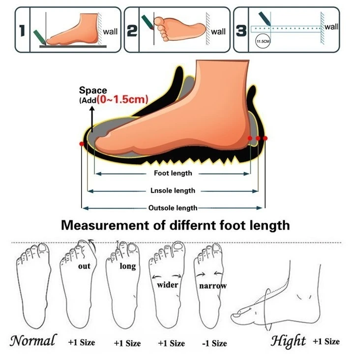 2. Если ваша стопаШире или подъем стопы выше, Пожалуйста, выберитеОбувь на один размер больше.