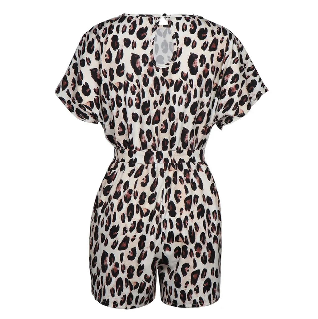 Женские леопардовые широкие брюки с круглым вырезом и коротким рукавом; Короткий комбинезон с ремешками