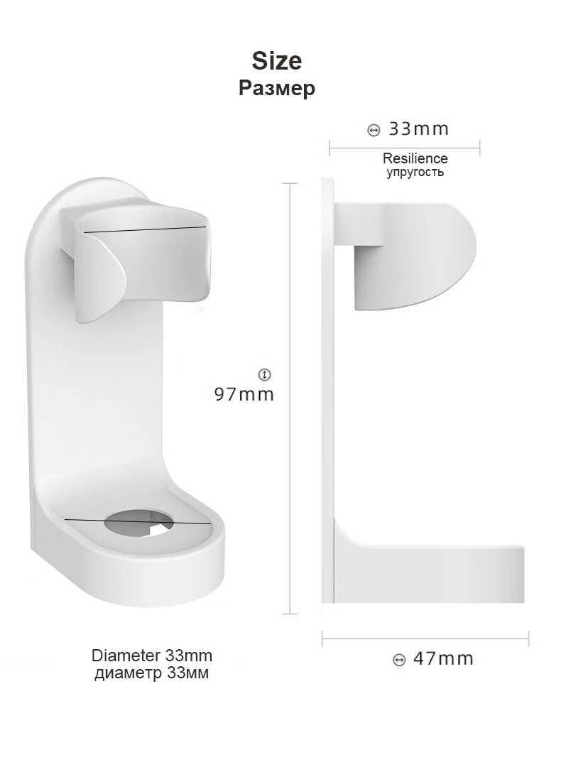 Подходит для 98% электрической зубной щетки и головки на рынке Поставляется с самоклеющейся пеной, позволяющей крепиться на стену, это хорошее решение, чтобы сэкономить место от счетчика Дизайн для нижней части делает не влияет на удобство при зарядке Изготовлен из качественного АБС-материала, без запаха, безопасен в использовании Идеально подходит для зубной щетки и сохраняет раковину в ванной чистой и сухой Советы: Перед установкой, пожалуйста, Очистите стену от водяных пятен, держите стену чистой и сухой. Подходит для плитки, стекла, любого металла, дерева, пластиковой поверхности и т. д.