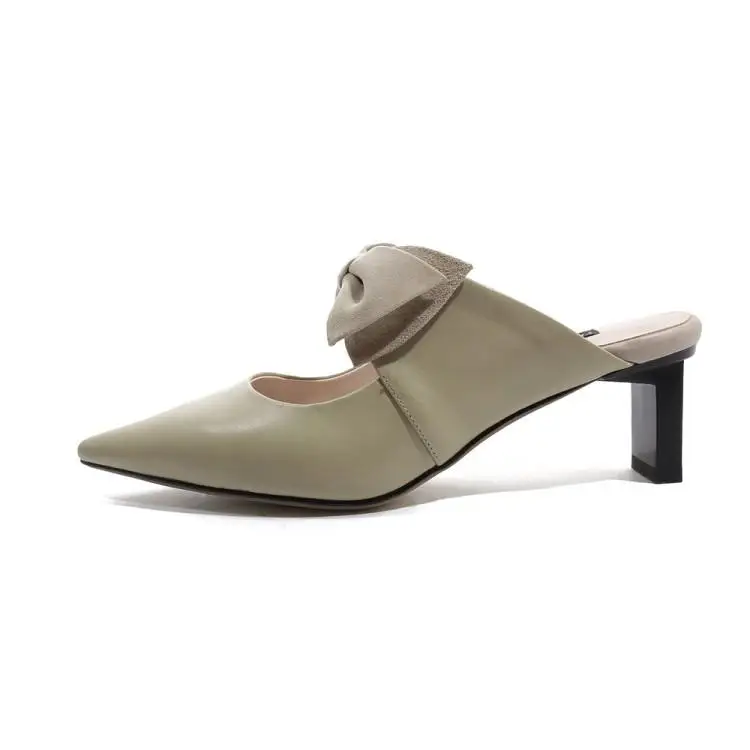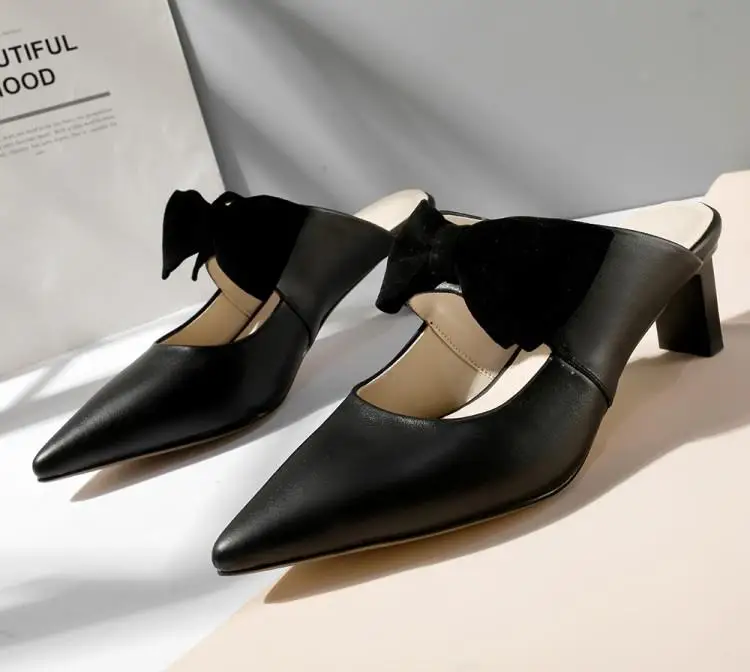 Женские шлепанцы с острым носком и бантом-бабочкой; Цвет белый, черный; Женские летние шлепанцы на квадратном каблуке; Модные открытые женские шлепанцы