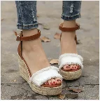 Женские шлепанцы на высоком каблуке женские летние танкетке с открытым носком