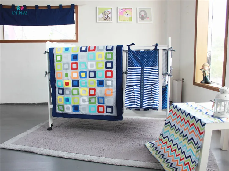 Бамперы для детской кровати, цветные квадратные полосы, 100% хлопок, Комплект постельного белья для маленьких мальчиков, удобные мягкие простыни для детской кровати, одеяло для кровати