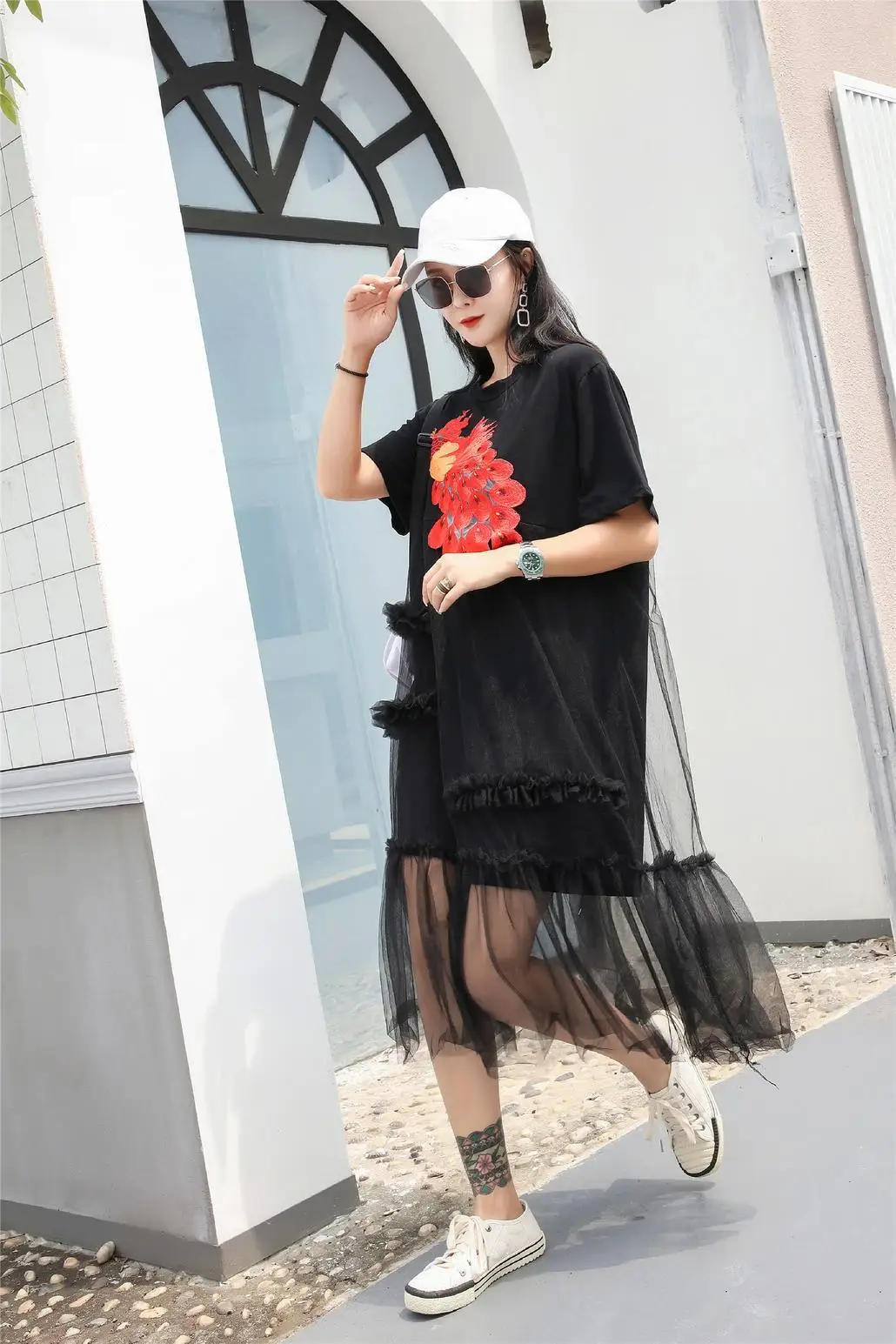 Сетчатое платье в стиле пэчворк; Женское платье; ZQY648