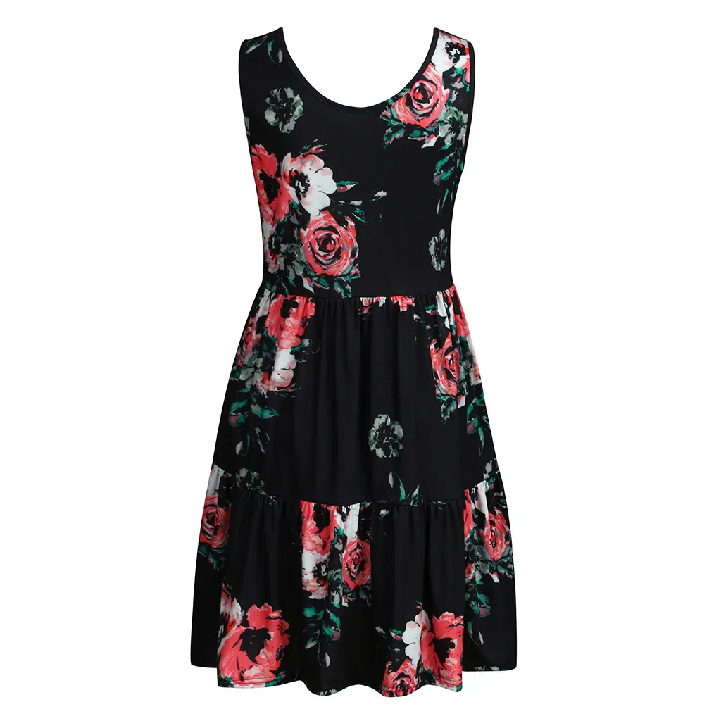 Женские повседневные платья трапециевидной формы без рукавов с цветочным принтом; свободные вечерние платья