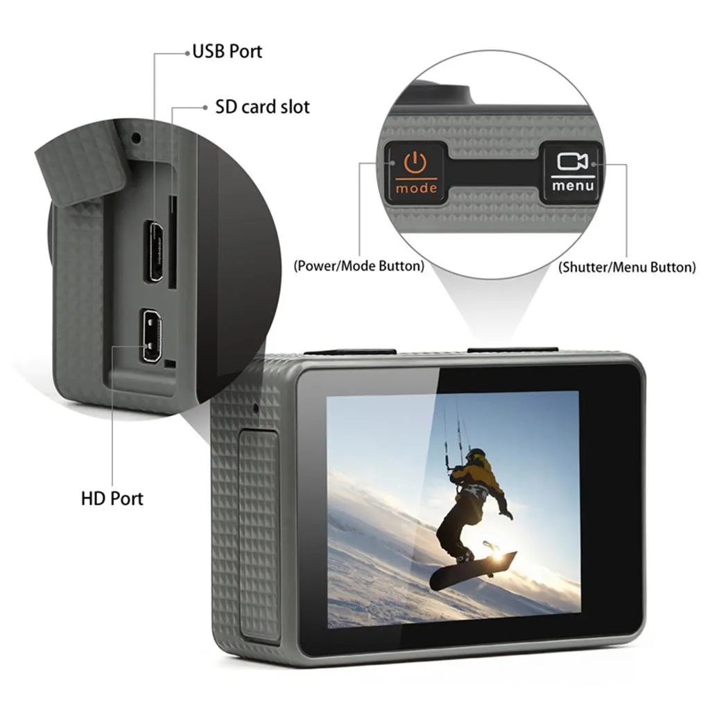 4K Ultra HD Action Камера: Профессиональный 4K 25fps & 2,7 K 30fps видео с 14MP Разрешающая способность изображения.