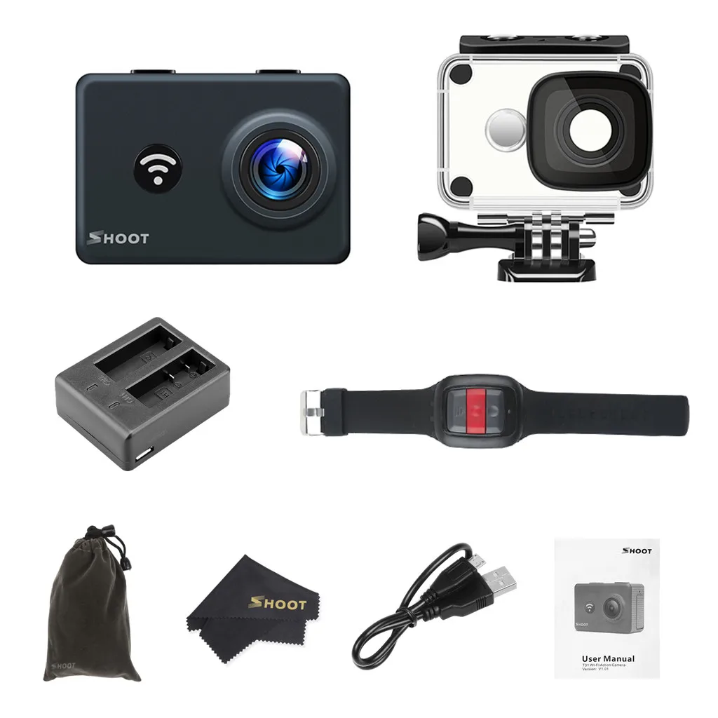 Управление мобильным приложением: просто Скачайте приложение «SHOOT Camera» из «Google Play» или из приложения Apple Храните «на телефоне или планшете» и Подключайтесь к этой экшн-камере. Затем Управляйте, просматривайте или загружайте изображения и видео через свой телефон или Планшет.