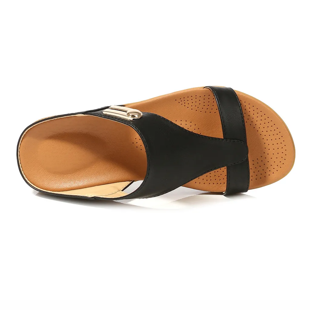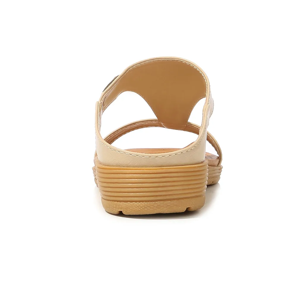 Женские повседневные богемные сандалии на танкетке с круглым носком; пляжные шлепанцы