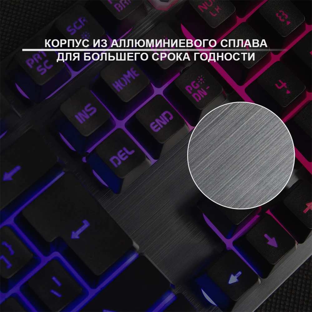 Игровой пульт IC Топ приятная на ощупь; клавиатуры Двуслойная пластиковая гравировка Тип интерфейса: USB Количество ключа: 104 клавиш Измерение: 46,5*39,2*33,5 см Длина кабеля: 1,6 м нейлоновый плетеный кабель Вес: 875 г Срок службы ключей: 10 миллионов раз Напряжение: 5 В/DC +-0,5 В • Сила тока: 200mA Состояние износа: высокая прочность, без износа Прочный чехол с разноцветным фоном огни
