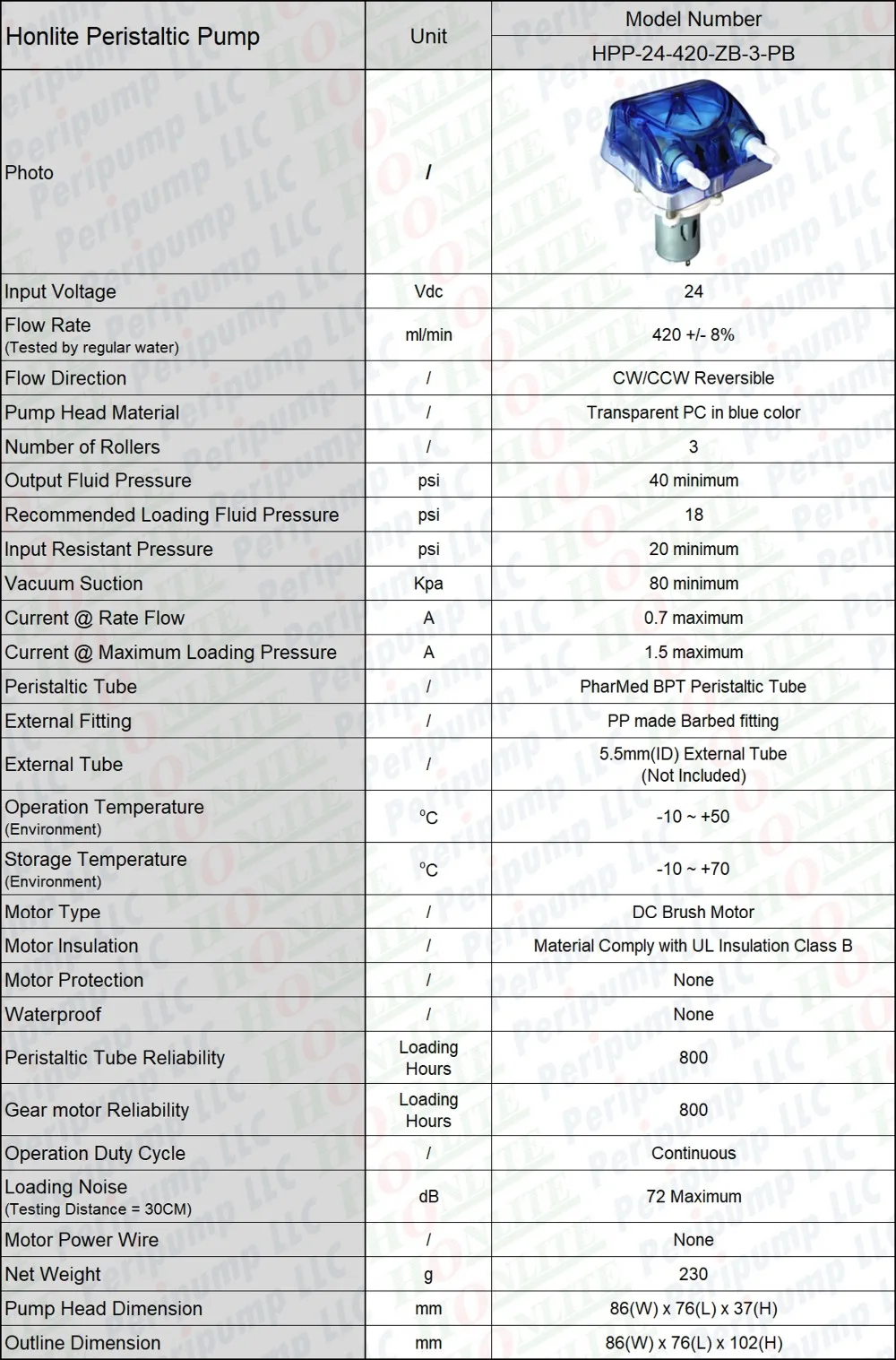 Точный 420 мл +/- 8% в минуту скорость потока @ 24Vdc, 0Cps