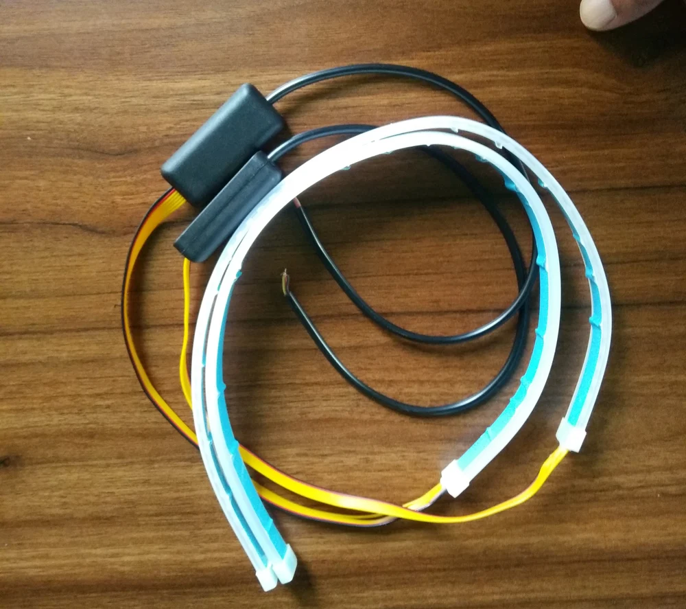2 шт. автомобильные лампы для автомобилей DRL светодиодный дневные ходовые огни Автомобильные Стайлинг Аксессуары поворотные сигнальные направляющие полосы Фары в сборе Особенности: Название продукта: светодиодный автомобиль дневного света Материал: силикон/светодиодный Входное напряжение: 12 В Подходит: Универсальный для всех автомобилей Характеристики: водонепроницаемый, плавный поворот Рабочая температура: -40 ~ 50 градусов Цельсия Светильник Толщина: 0,3 см (около 0,12 дюймов) Светильник Размеры: 30 см/45 см/60 см (около 11,81 дюймов/17,72 дюймов/23,62 дюймов) Цвет (вариант покупки): 1. Белый переливающийся поворот на желтый 2. Ледяной Синий течет желтым 3. Ледяной Синий течет желтым Ангельские глазки, головной светильник поворотный светильник. Красный провод для белый светильник, желтый провод для желтый светильник, черный провод для отрицательного провода. (При вождении светильник белый, при повороте он постоянно течет желтым цветом) Установка 1. Наклейте на внешнюю фару 2. Проводное соединение: Красный провод: подключение к фары или ACC (+) Черный провод: подключение к аккумулятору отрицательный (-) Желтый провод: подключение к сигналу поворота (+) Посылка: 2 шт/заказ Примечание: 1. Фотографии только для справки. Фактический продукт должен превалировать. 2. Ваше удовлетворение-наша главная забота. Пожалуйста, свяжитесь с нами, чтобы лучше решить любую проблему, прежде чем оставлять нейтральные или негативные отзывы. Большое спасибо!