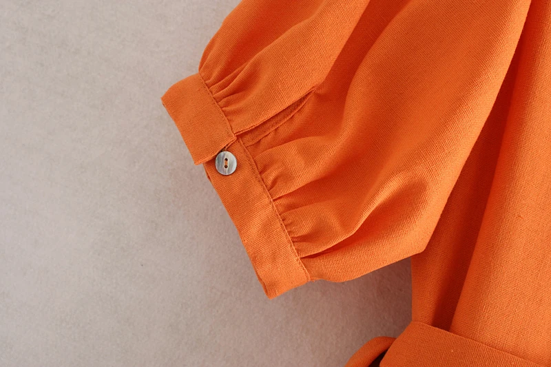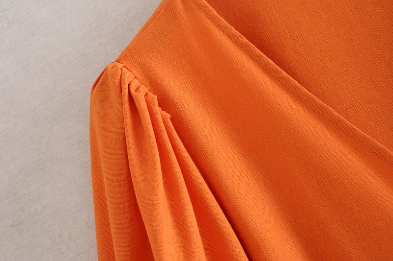 Женское платье с v-образным вырезом Shemujersky, оранжевое платье из хлопка и льна, повседневное элегантное платье с рукавами-фонариками, лето 2019