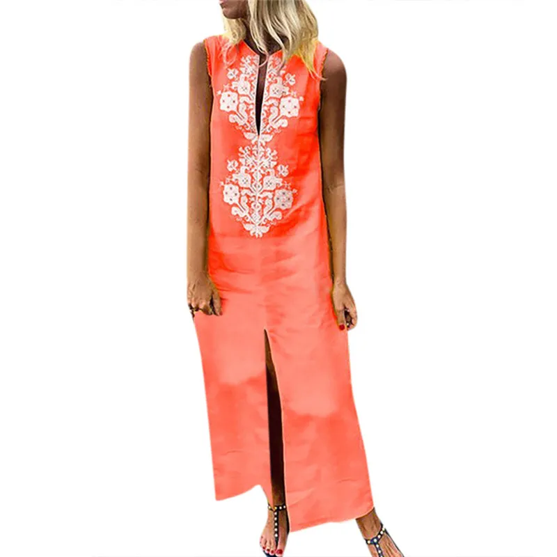 Женское свободное платье-Кафтан JAYCOSIN, свободное Повседневное платье макси с разрезом, без рукавов, с принтом, лето 2019