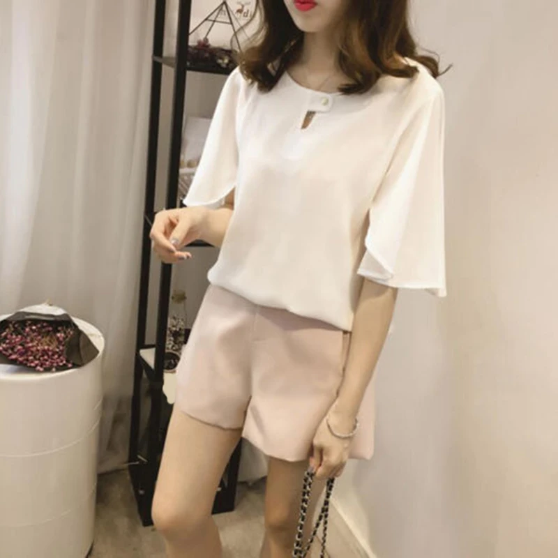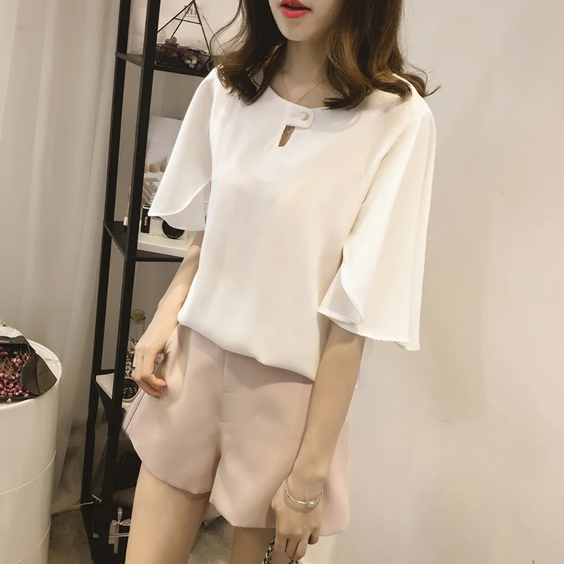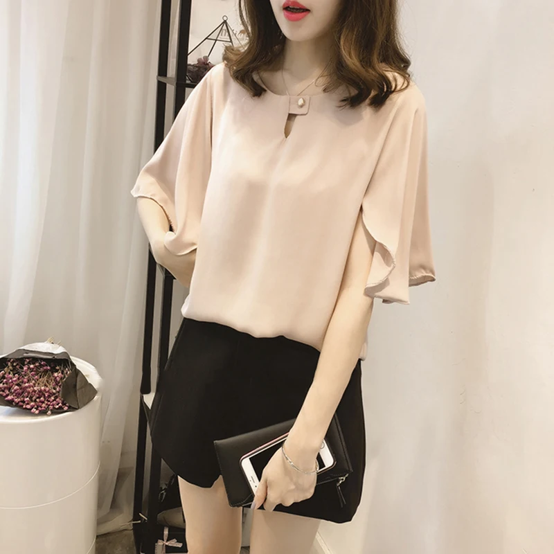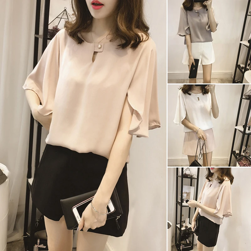 *Описание товара: Новый Женский Повседневный сексуальный женский модный плотный шифон, цвет с расклешенными рукавами блузка