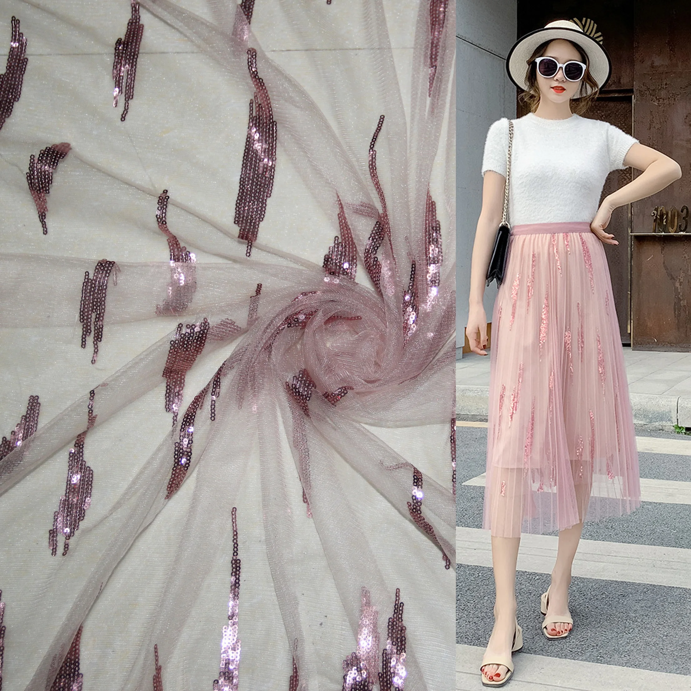Блестящая вышитая мягкая фатиновая блестящая сетчатая ткань с блестками; Одежда для девочек; Женское платье из блестящего материала; Цвет белый, серый; Ткань с принтом