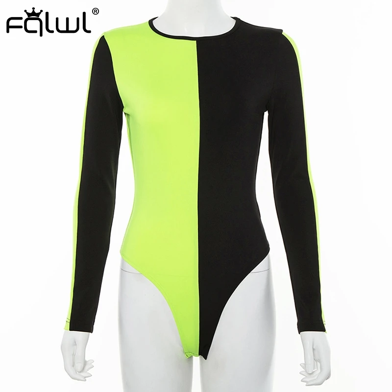 Женский комбинезон с круглым вырезом FQLWL, черный пляжный комбинезон с длинными рукавами, в стиле пэчворк