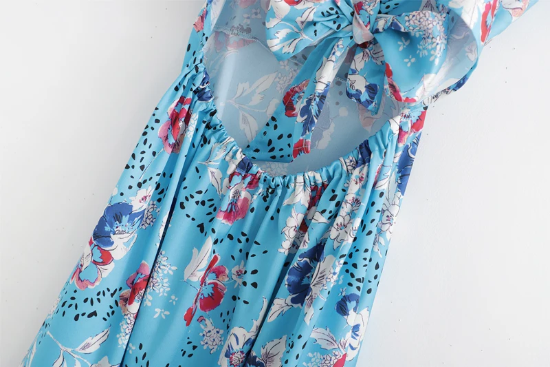 Женское пляжное платье-миди SheMujerSky, голубое платье с цветочным принтом и открытой спиной на бретельках, сексуальное облегающее платье на завязках сзади, лето 2019
