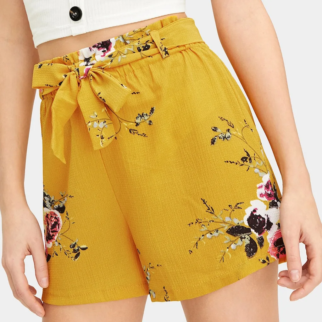 Модные женские летние повседневные короткие брюки с цветочным принтом и бантиком
