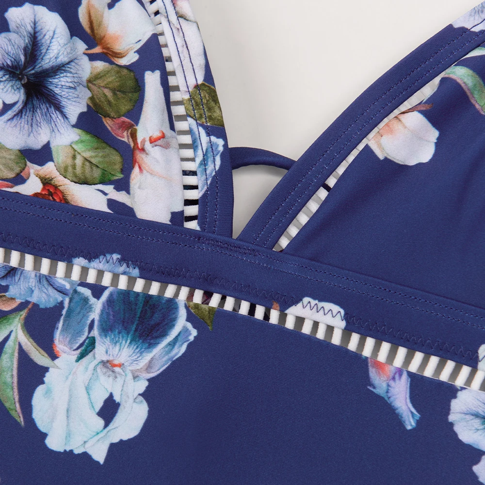 Блестящий яркий Цельный купальник с принтом в виде цветов желтой груши. Он имеет вырезы на груди и талии, чтобы акцентировать внимание на средней области и притянуть глаза вверх, создавая Подчеркивающий фигуру образ. Мягкие чашки и подкладка делают его очень комфортным выбором для развлечения на солнце.