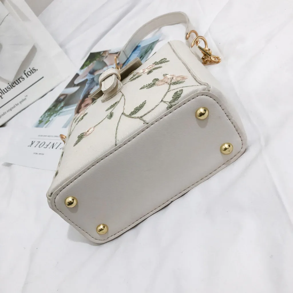 Женская жемчужная кожаная сумка через плечо с цветочной вышивкой пляжная сумка
