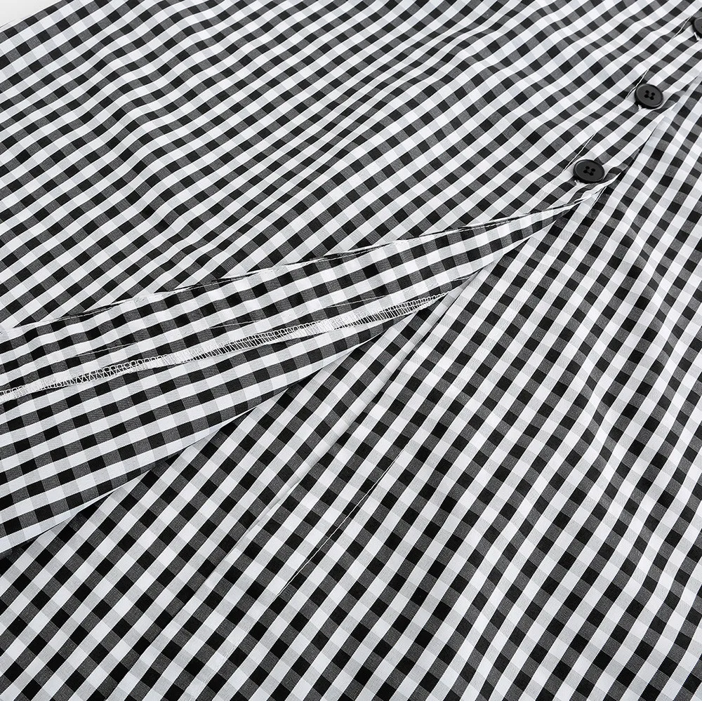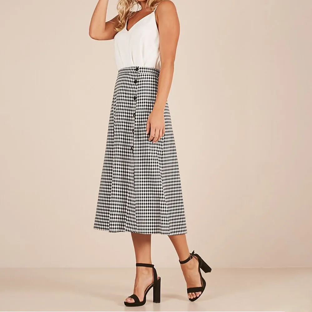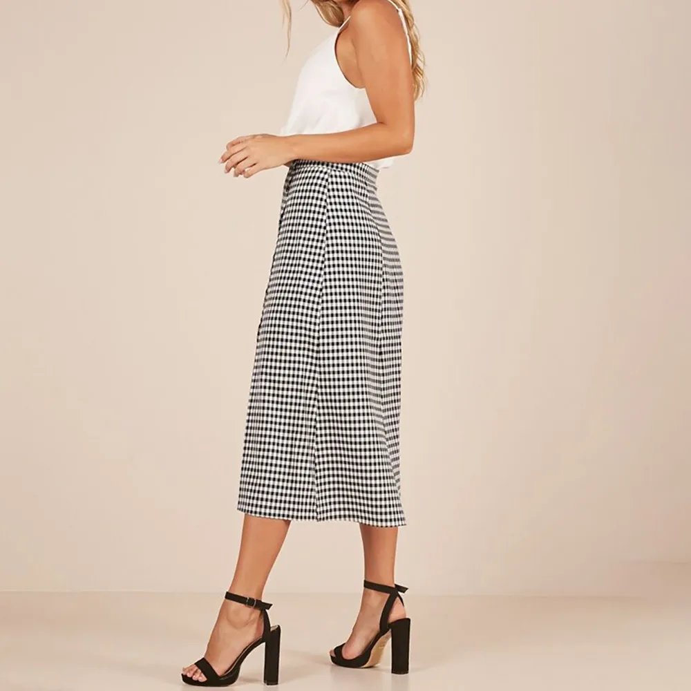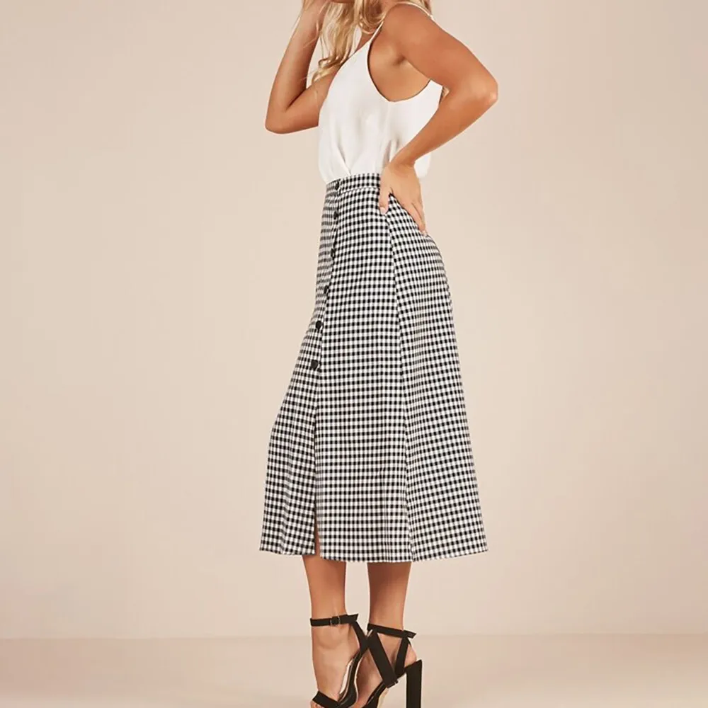 Женская клетчатая юбка с разрезом по бокам и высокой талией