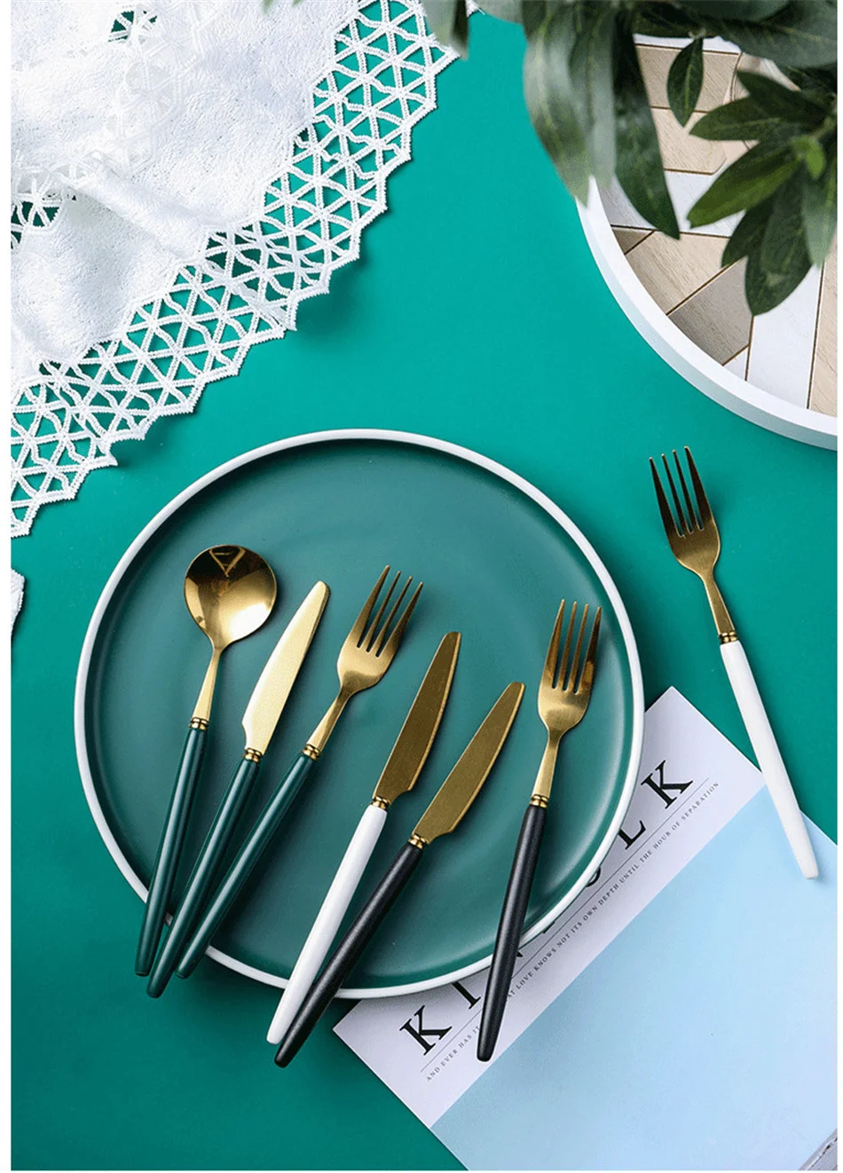 1 шт. керамическая ручка нож из нержавеющей стали вилка ложка десерт западный стиль набор столовых приборов