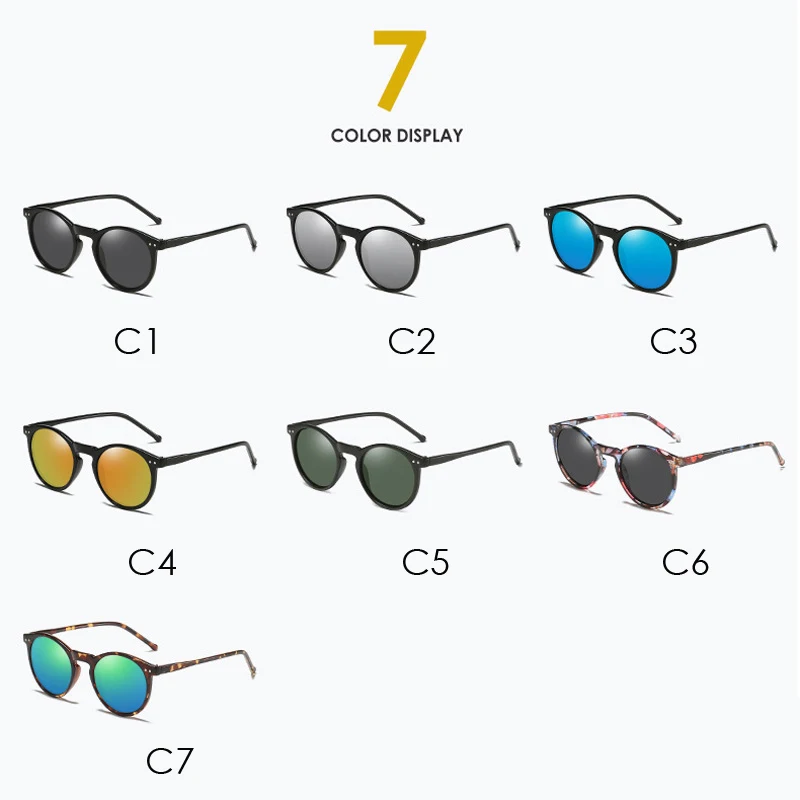 1 x Поляризованные солнцезащитные очки для мужчин и женщин, для вождения, круглые солнцезащитные очки в ретро стиле, мужские и женские очки UV400, солнцезащитные очки