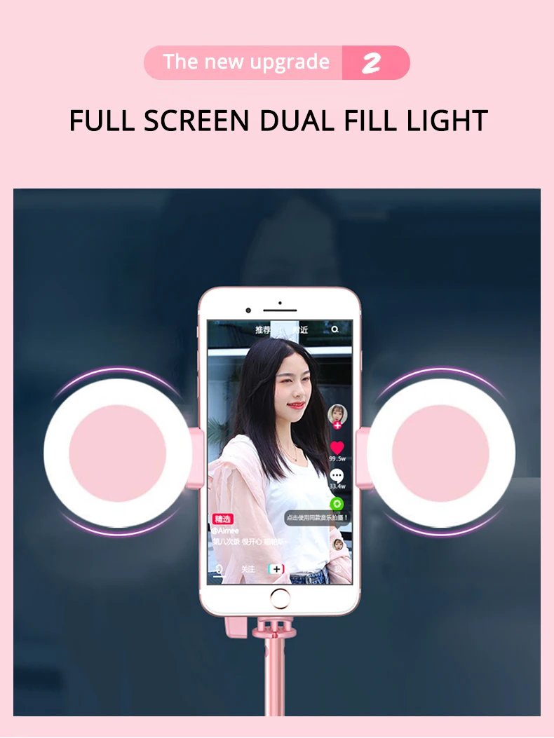 TRAVOR 1,7 M Bluetooth селфи палка штатив съемный с двойной заполняющий светильник для Мобильный телефон фото Vibrato live video на YouTube
