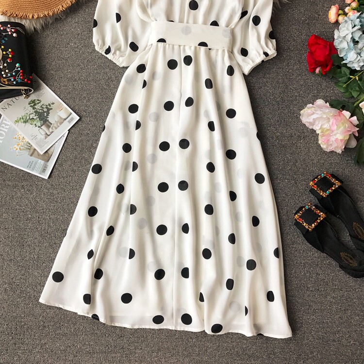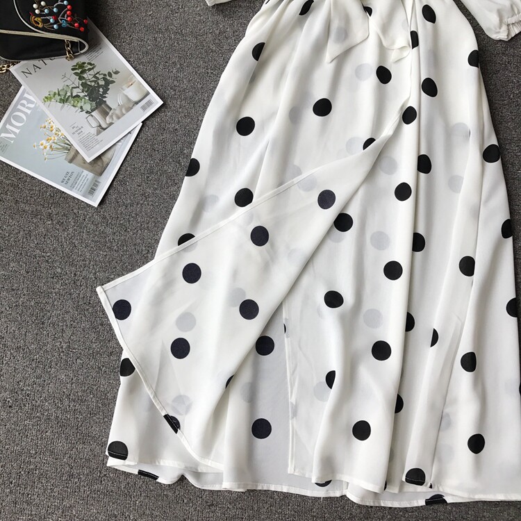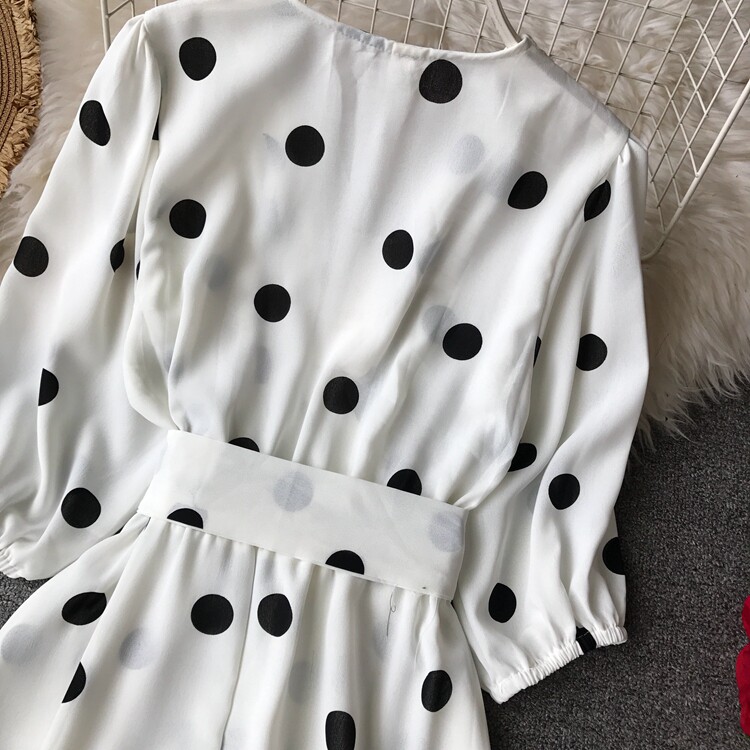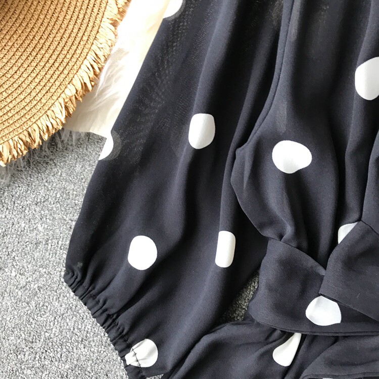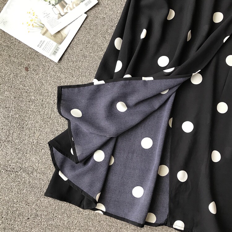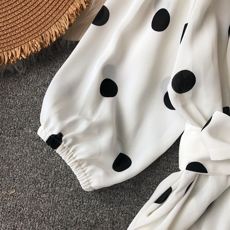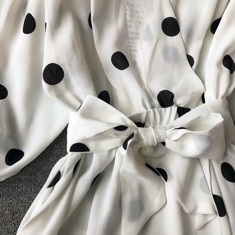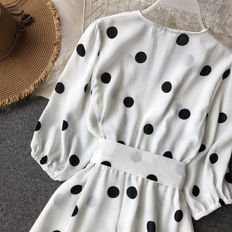 Женское винтажное платье в горошек, праздничное облегающее платье с v-образным вырезом и пышными рукавами, Пляжное ТРАПЕЦИЕВИДНОЕ ПЛАТЬЕ на лето 2019